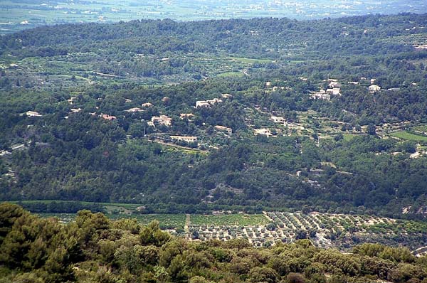 Vers l'Ouest et le Sud Ouest s'étend la plaine qui rejoint le Rhône et la Durance, ces deux Fleuves marquant les limites Ouest et Sud du COMTAT VENAISSIN.